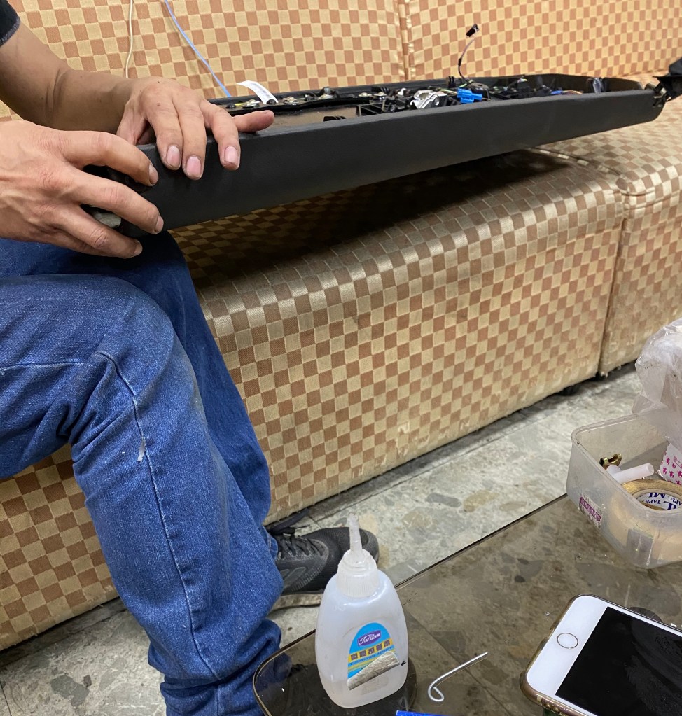 基本上要修復有幾種方法:1. 在海綿跟塑膠脫離的介面上膠。之前試過了在一般皮革改裝店用噴射強力膠來黏著海綿跟塑膠板,但是效果不彰。2. 更換新的門板,原廠的報價是單邊門板要8萬台幣,所以所費不貲。3. 置之不理,這個取決於每位車主的美觀感而也有雨水滲入的風險。