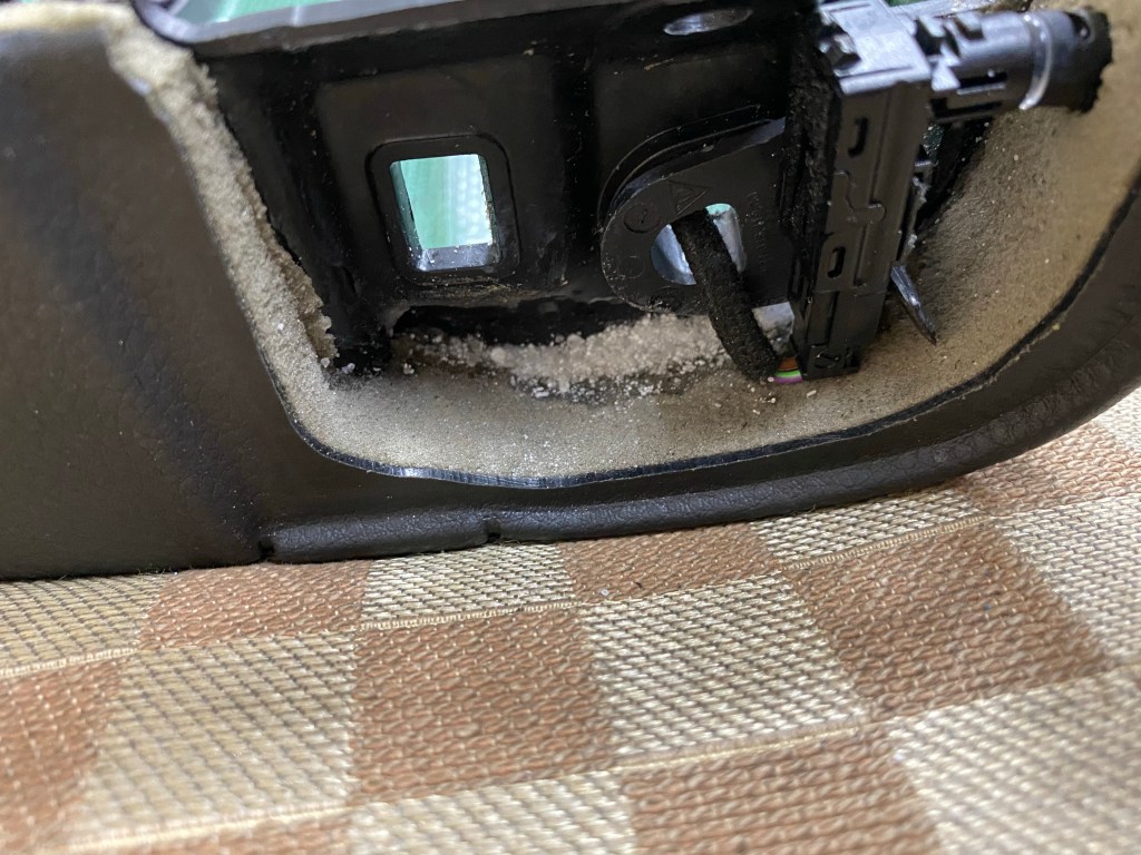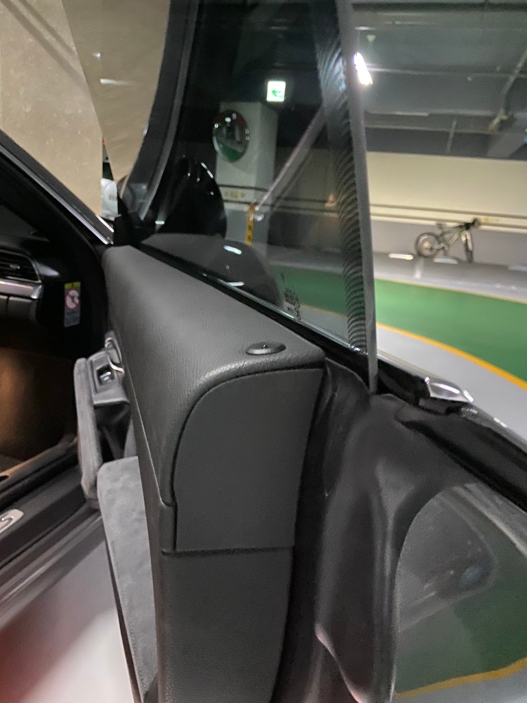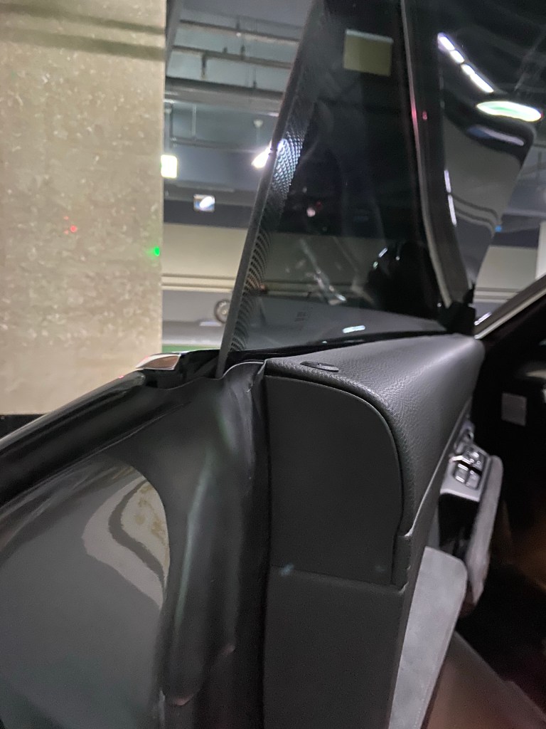 近來從外面的材料行推薦在八里的店家應該有技術可以改善,抱著姑且一試的心態去給老闆處理。老闆先把脫離的介面上的鬆散泡綿清除後,上了特殊膠水(非環保材質)跟用硼砂來增加塑膠跟海綿的結合力。大約一個小時的施工時間,原本脫離的介面已經看不到,再加上塑膠板在玻璃窗下的變形程度已經有很大的改善。當然這種手工處理的工資並不便宜,不過卻是老闆過去經驗的累積改良過的手法,老闆說之前處理過的997跟991車主還沒有跟他反應有又脫離的現象。